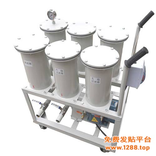LJL精密滤油机设有六级逐级加密的五层加强型精密过滤芯,轻便灵活、操作方便、不用滤纸、不污染场地、能精细过滤油中的各种杂质。是电力、石化、冶金、机械、铁路等各行业对绝缘油、润滑油、液压油、淬火油、清洗油、冷冻油、防锈油、导热油等油品的高精度除杂,手推式设计,移动方便,特别适合于远距离、加油、抽油及过滤使用。整机外形尺寸很小,它除了小型高效、轻便灵活外,还具有装拆容易,清洗方便,使用中不漏油的特点,克服了传统的板框式滤油机换滤纸时,不可避免要漏油污染场地的致命弱点。传统的板框压力式滤油机需购买大量的滤纸,还要自己打孔,一次少则换十张,多则数十张,油中含水量较大时则十多分钟就需更换一次,否则,一旦纸被击穿,杂质必将穿过滤纸混入被净化的油中,导致前功尽弃。因其采用寿命极长的精密过滤系统(逐级加密式过滤芯),滤芯表面罩上一层复合材料做的高强度的精密过滤膜,当精滤系统杂质堵塞后,可将其拆御下来清洗后再装上去(可反复清洗使用),使其拆装、清洗方便、省事,工艺独特、操作简单。